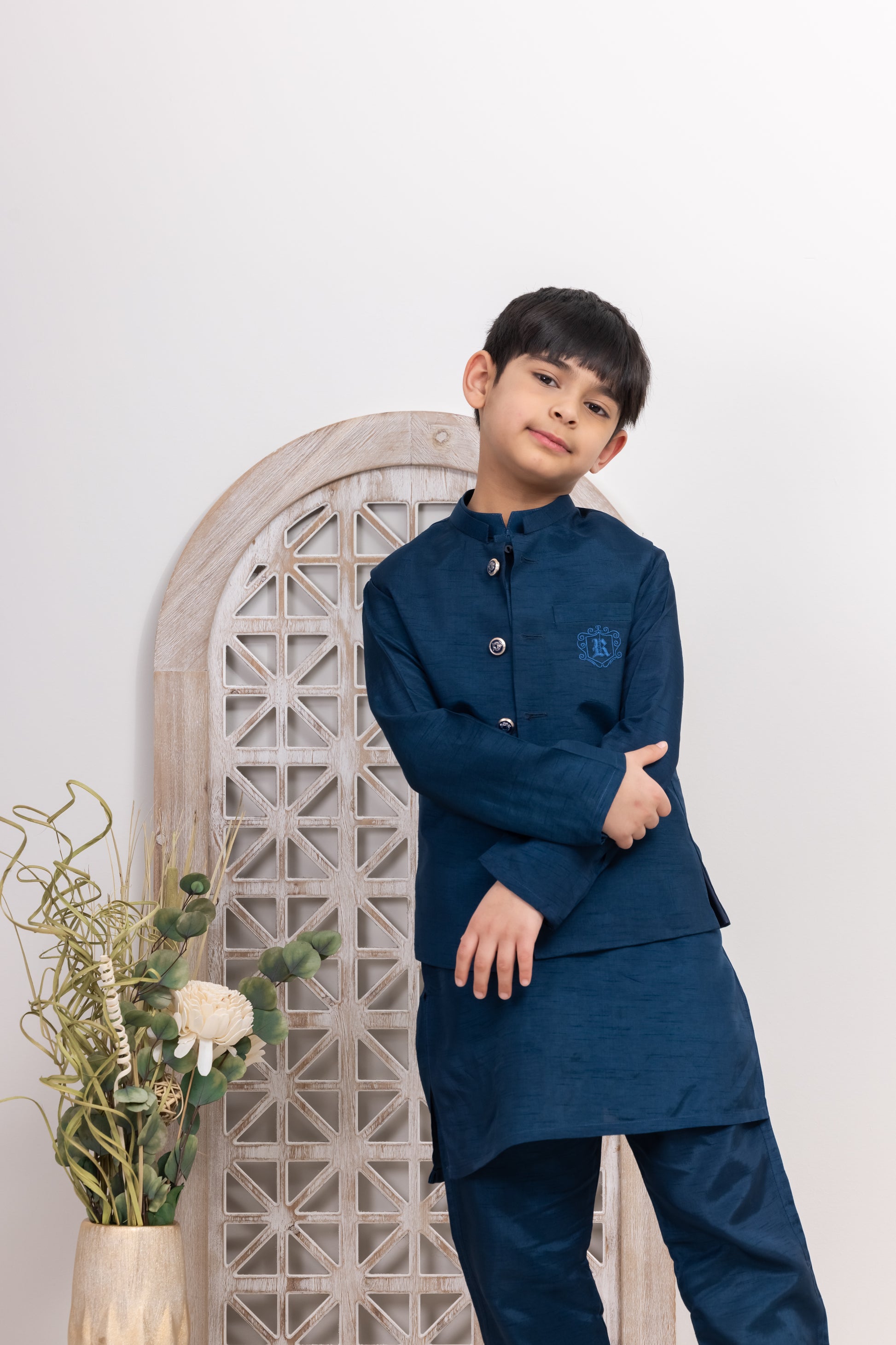 This Blue Rawsilk 3 piece suit with 2 functional pockets. Give the kids traditional look for any event. This piece have a blended fabric and easy to wear. No-itch collar and sleeves with Wide neck to easily fit over baby's head Every Size can cover age gape (For Example: 6 yrs old can wear between 5yrs - 6yrs Or 6 yrs Old can wear 6yrs - 7 yrs depend on the height and width)
