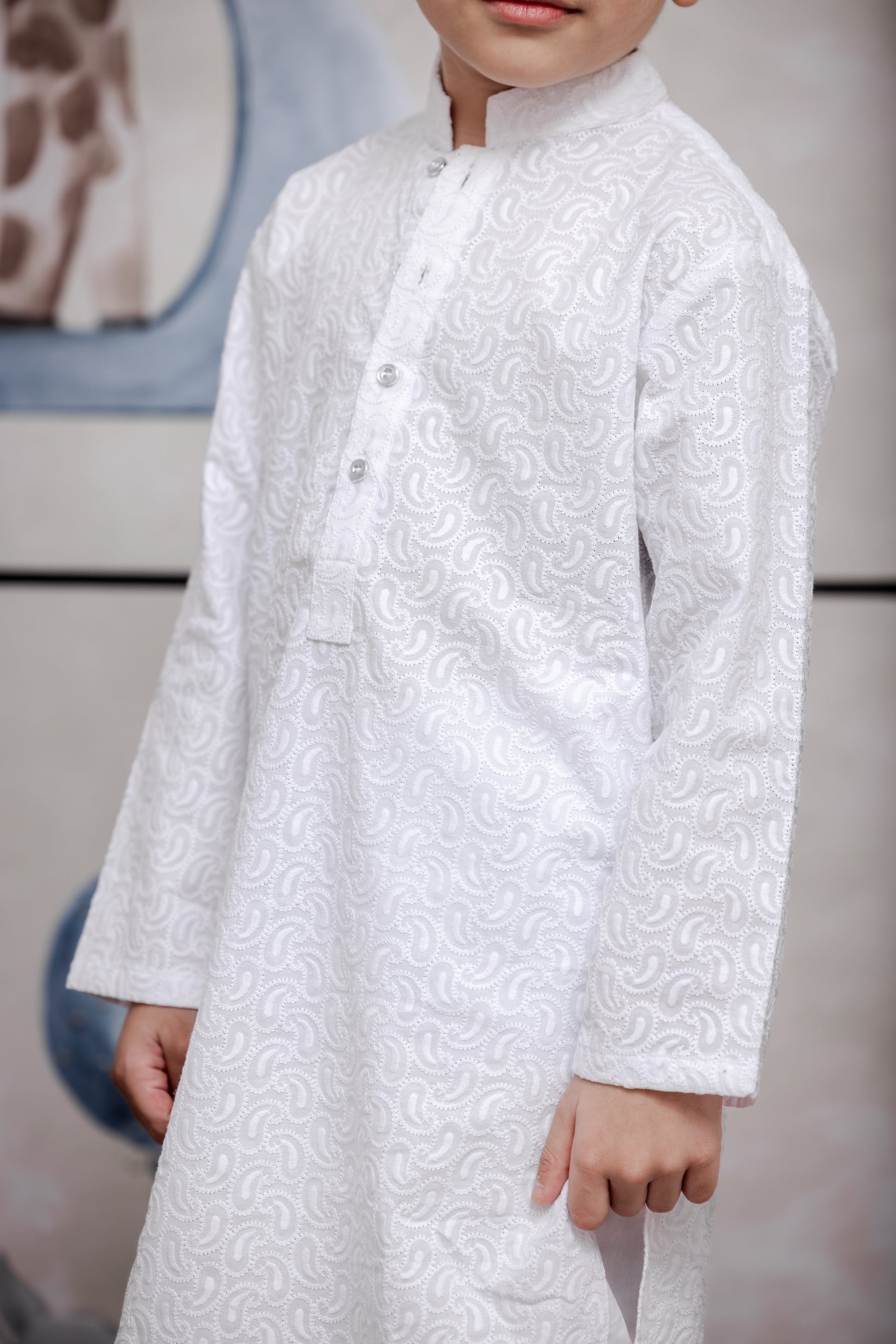 MOON - Pure white, embodies calm, purity and elevated tradition. No-itch collar and sleeves with Wide neck to easily fit over baby's head.